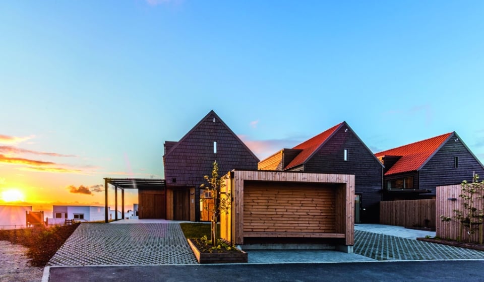The three "Multi-Comfort" houses in Myklebust, Norway, built entirely by Saint-Gobain's Optimera and Dahl brands in 2015.